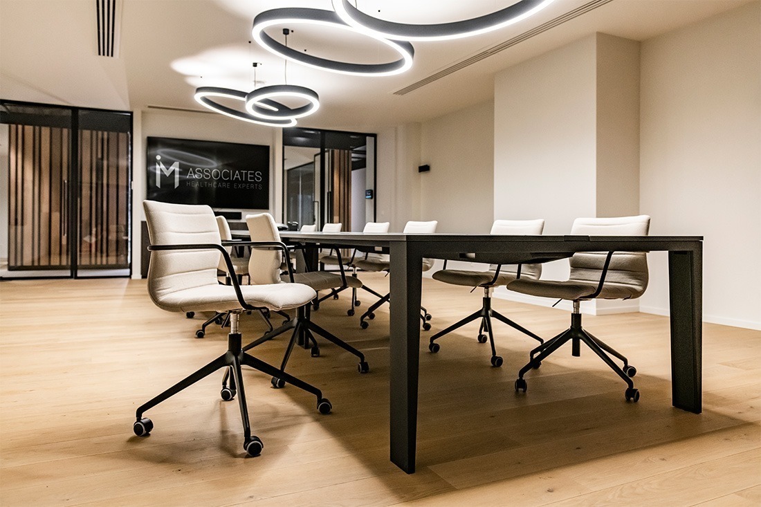 Bei den Gesundheitsexperten von IM Associates in Herent (BE) haben wir die Einrichtung des Verwaltungsbüros, verschiedener Arbeits- und Besprechungsplätze, eines Besprechungsraums und der Kantine realisiert.