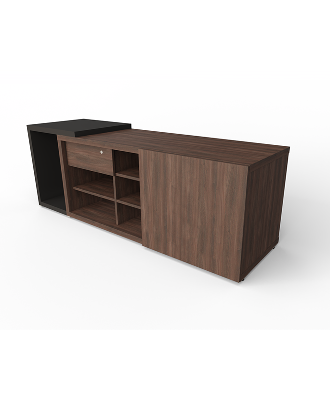 Der Beistellschrank Thomi mit Anbauteil ist aus der Thomi-Serie. Neben diesem Beistellschrank besteht die Thomi-Serie aus einem Chefschreibtisch, einem Managementschreibtisch oder einer Kommode.
