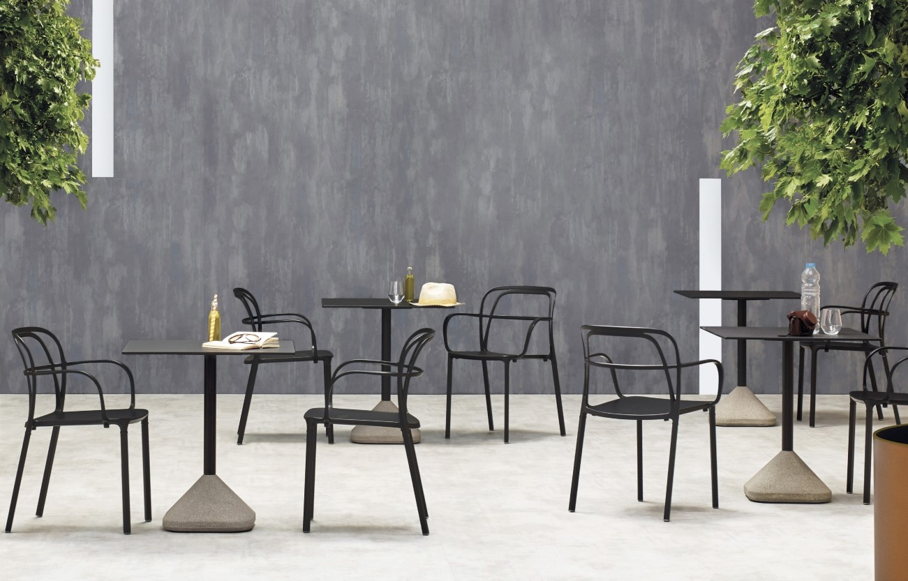 Der Tisch Concrete ist mit einer runden oder quadratischen Platte erhältlich. Beide haben eine Größe/einen Querschnitt von 70 Zentimetern. Für die Tischplatte können Sie zwischen verschiedenen Holzdekoren wählen. Das Gestell des Tisches Concrete ist in Schwarz, Weiß und Anthrazit erhältlich. Der Concrete ist auch als Stehtisch erhältlich.