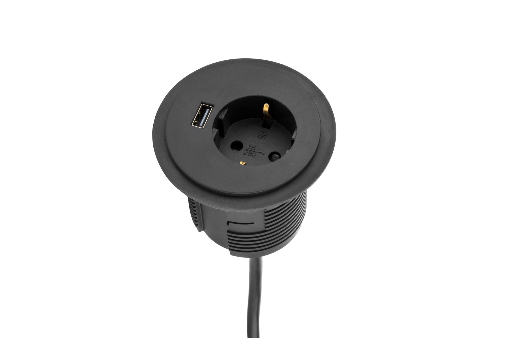 Das Einbaumodul Point ist in Weiß oder Schwarz erhältlich und wird in zwei Versionen angeboten: mit 1x Strom und 1x USB-Ladung oder mit 1x Strom und 1x Kabelführung.