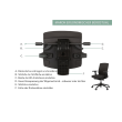 - Höhen-, breiten- und tiefenverstellbare sowie schwenkbare (mit Knopf) Armlehnen mit weicher Polsterung.