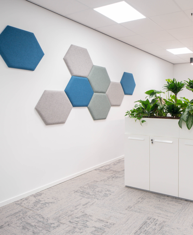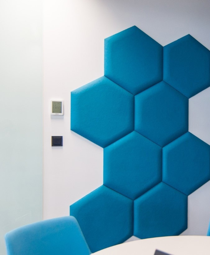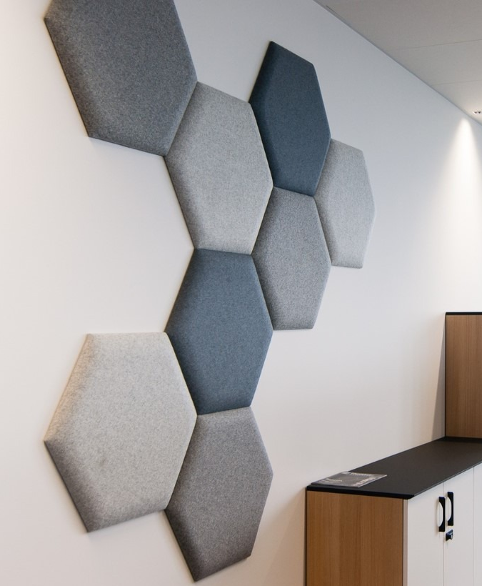 Die Akustikpaneele von Hexagon tragen zur Akustik Ihrer Büroräume bei. Darüber hinaus verleiht der Hexagon Ihren Büroräumen durch seine Form und die möglichen Farbvielfalt ein verspieltes Aussehen.